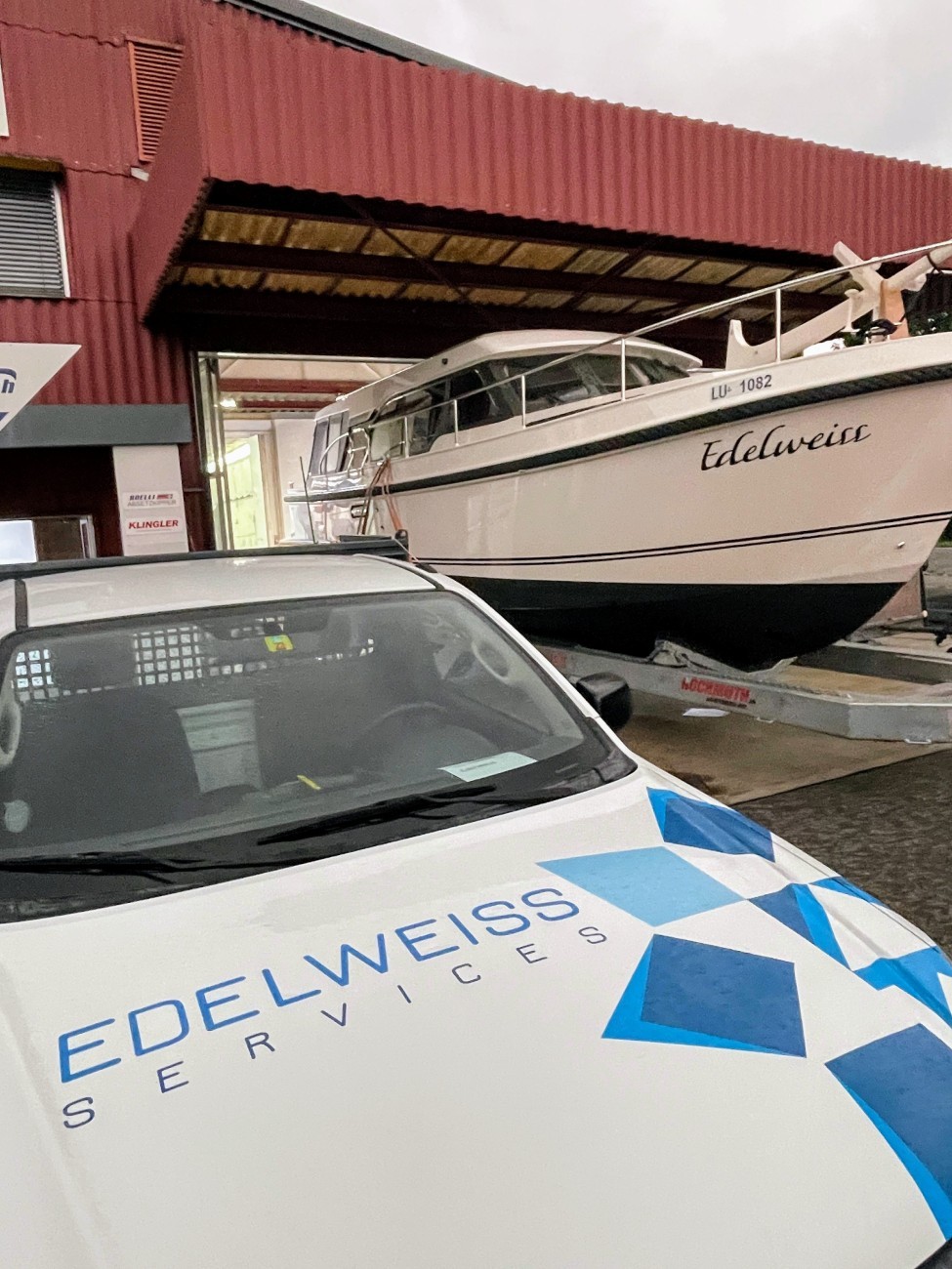 ️ Einerseits: In unserer grossen Einbrennkabine konnten wir Lackierarbeiten am Boot „Edelweiss“ der Hochmuth Bootsbau AG ausführen.