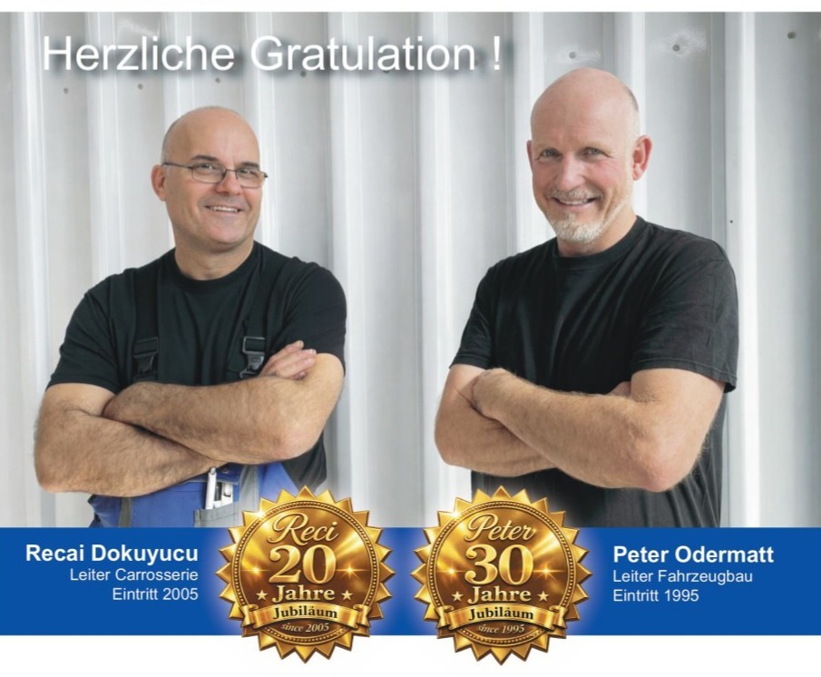 Wir feiern 30 Jahre und 20 Jahre Firmenzugehörigkeit von Peter Odermatt und Recai Dokuyucu, die unsere Firma über all die Jahre hinweg entscheidend mitgeprägt haben.