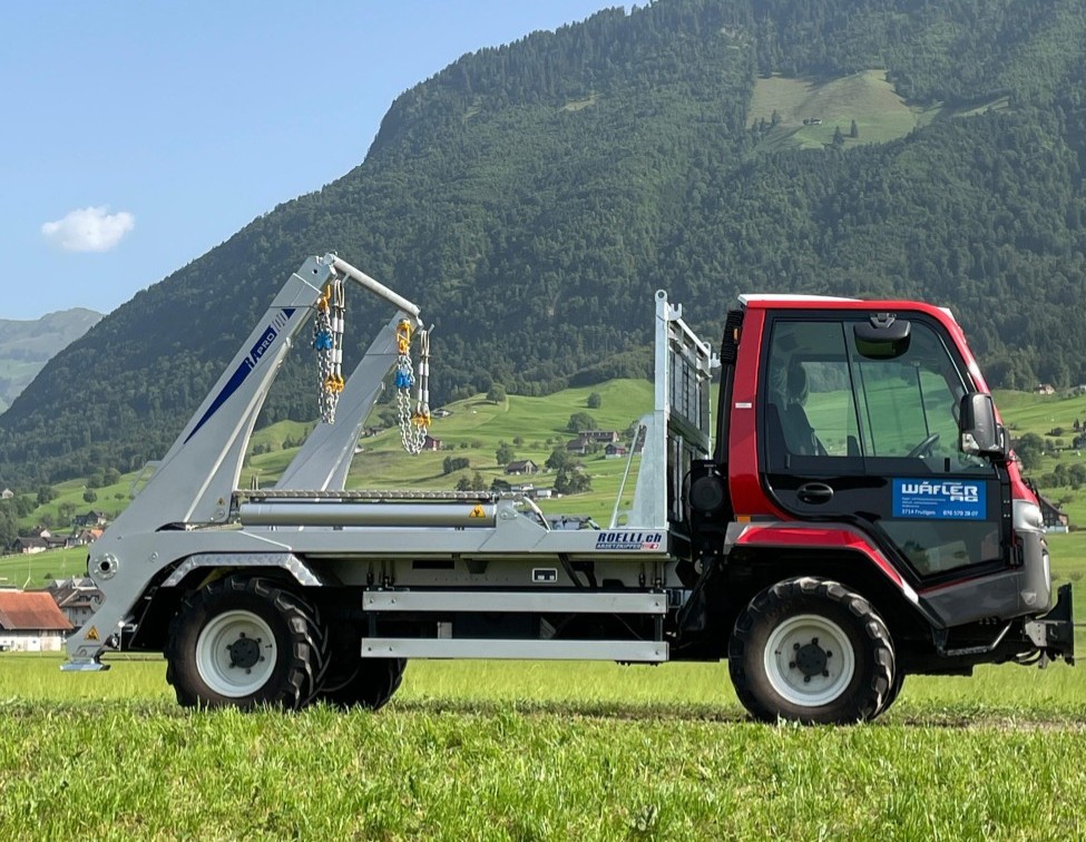 Ab sofort ist der ROELLI-Absetzkipper RApro100 als Wechselaufbau auf einem Lindner Unitrag 102 im Einsatz.